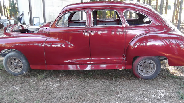 I am not a great blogger. In fact I have trouble talking about my art in general, until I have had a drink or two as my friends will attest. This winter I was commissioned to mural a 1948 Dodge Custom Deluxe and due to the amount of work that went into the restoration I really wanted to share the experience. So this blog, rough as it is, is mostly to share the pictures of the transformation. I am still waiting for the original photos of the car and details. So this part 1 starts when I came into the picture.Tom is a mechanic and he likes fast cars. He used to have a race truck, details on the motor will come later. Tom contacted me just before Christmas 2012.